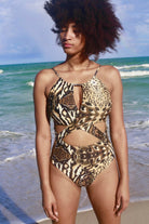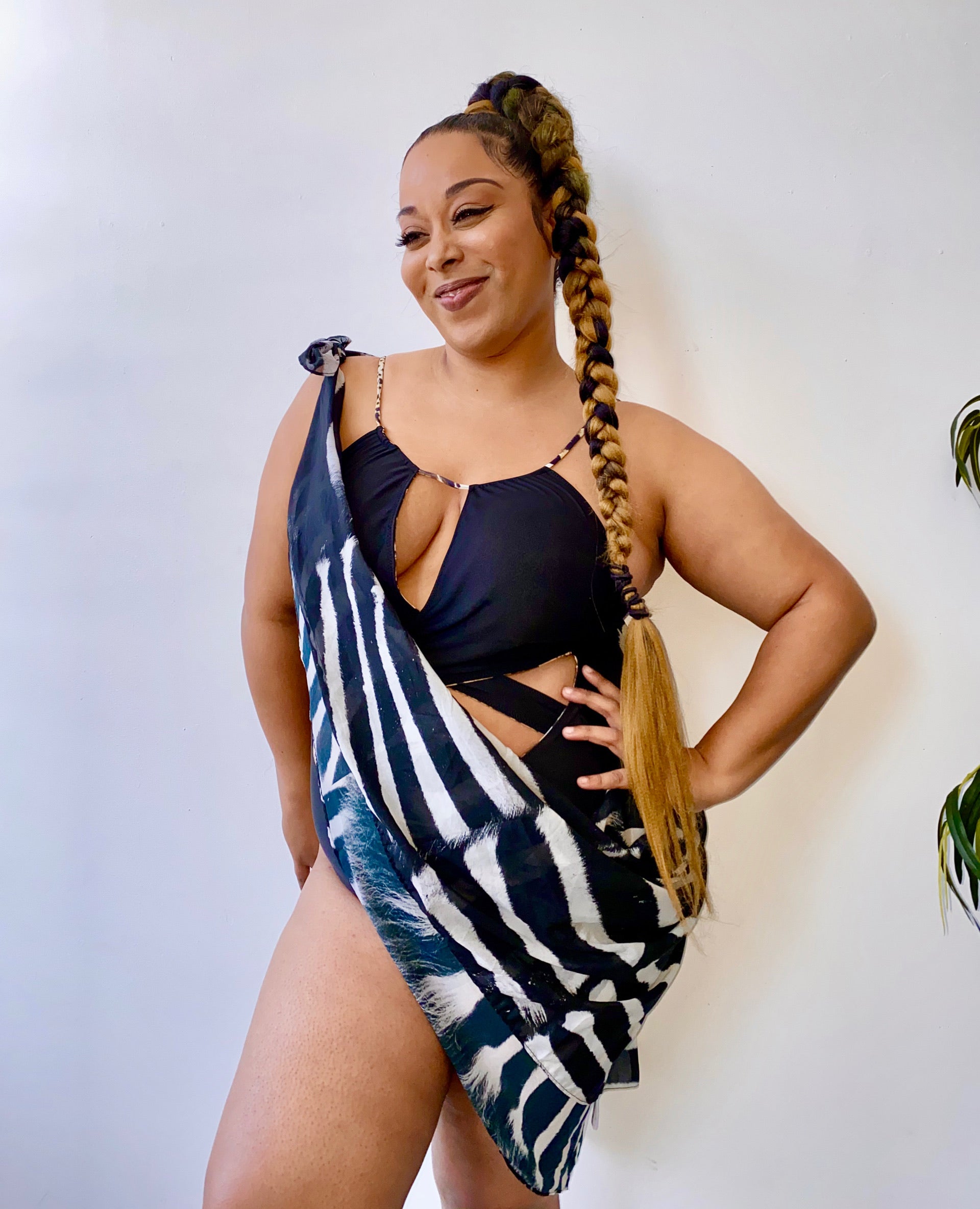 Crossed front one piece with fully adjustable straps. Back straps can be worn crossed or straight. Reverses to a sleek black Chanel X Style.