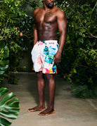 Floral Classic fit swim trunks have an adjustable drawstring waistband for optimal fit and a back slip pocket perfect for your phone, inner envelope pocket perfect for keys.